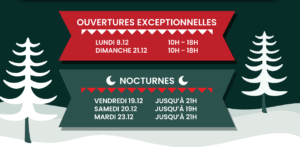 L’horaire de fermeture des boutiques est modifié les veilles de jours fériés: 8h30 – 17h00